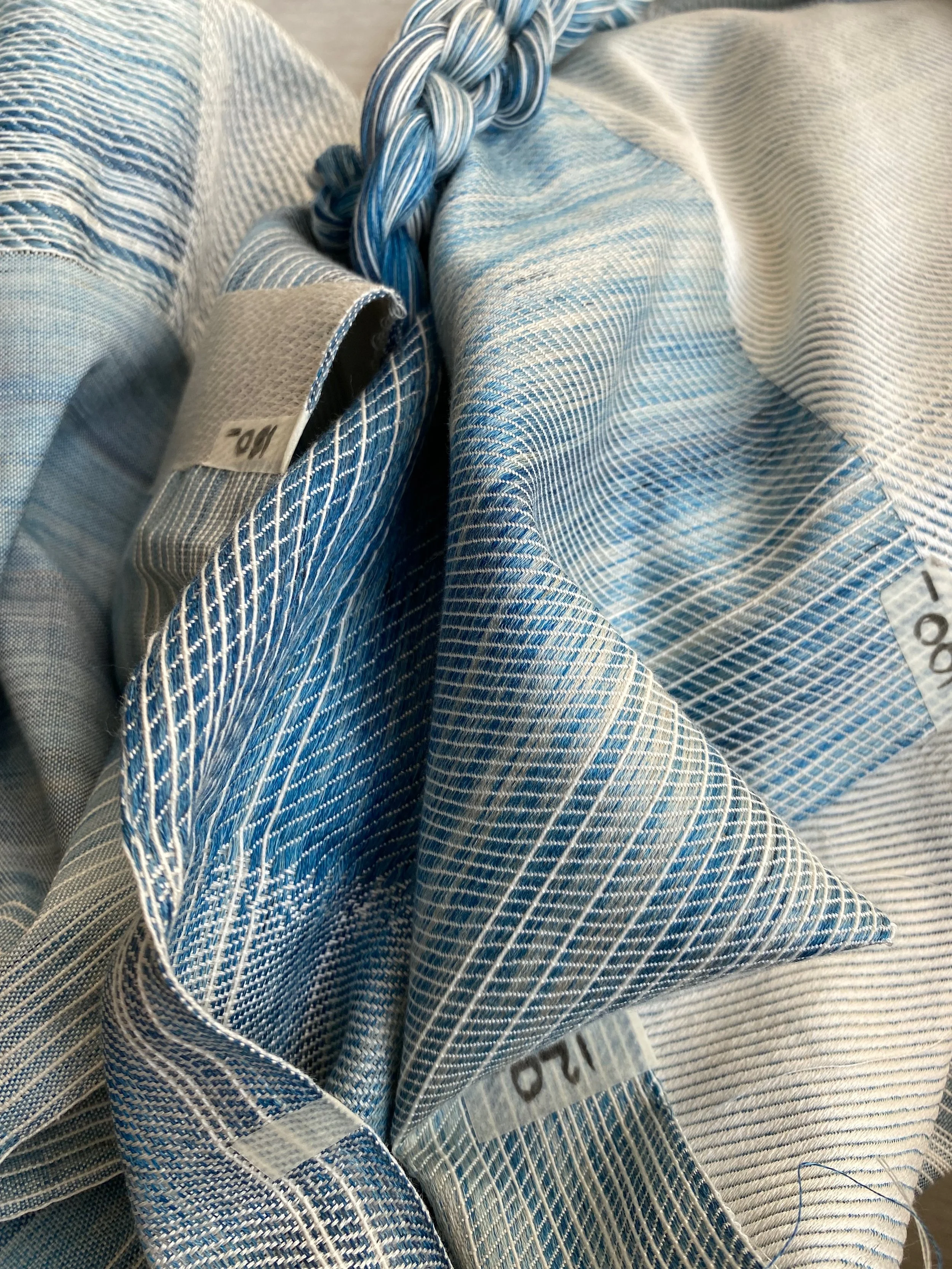 Étoffe en soie et coton tissé avec impression cyanotype